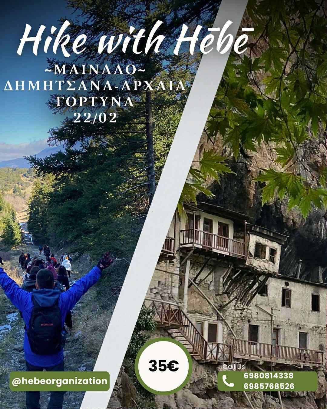 📍 Μαίναλο | 22/2 🥾 Πεζοπορία στη φύση της Αρκαδίας Η διαδρομή μας ξεκινά από Δημητσάνα και καταλήγει στην Αρχαία Γόρτυνα 🌲 ✔️ Μήκος: 9,5 χλμ ✔️ Δυσκολία: Εύκολη – κατάλληλη για όλους 💰 Κόστος: 35€ Στην τιμή περιλαμβάνονται: 🚌 Μεταφορά με πούλμαν από & προς Αθήνα 🧭 Αρχηγός και συνοδοί πεζοπορίας 🥢 Πεζοπορικά μπατόν 🩹 Ομαδικά φαρμακεία 📄 Όλοι οι νόμιμοι φόροι ℹ️ Για αναλυτικές πληροφορίες, στείλτε μας μήνυμα ή καλέστε στα τηλέφωνα που αναγράφονται. 📌 Πολιτική ακυρώσεων • Κατάθεση του ποσού εντός 3 ημερών μετά τη δήλωση συμμετοχής • Ακύρωση με πλήρη επιστροφή χρημάτων έως 12/2 🌿 Έλα να περπατήσουμε μαζί σε μια μοναδική διαδρομή, γεμάτη ιστορία και φύση!